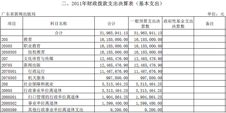 第一部分 2011年省新闻出版局部门决算基本情况说明