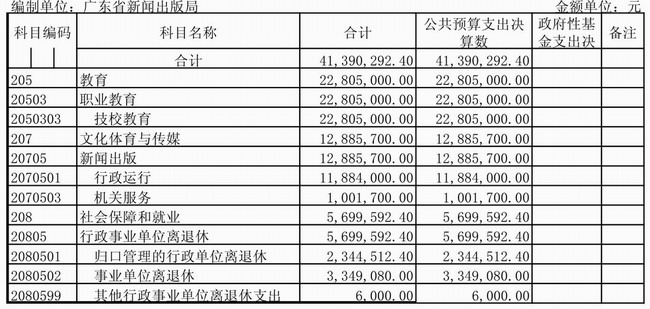 第一部分 2012年广东省新闻出版局部门决算基本情况说明