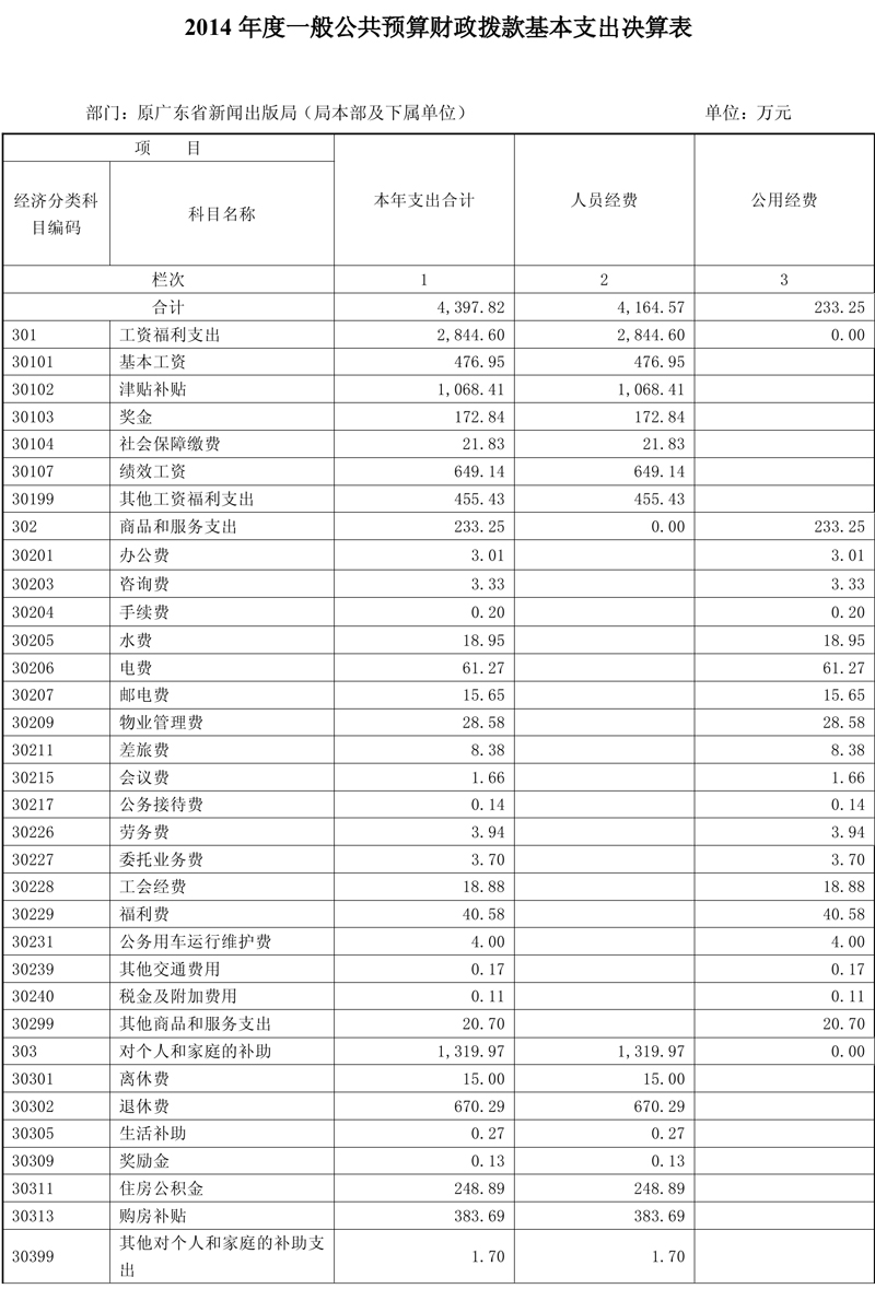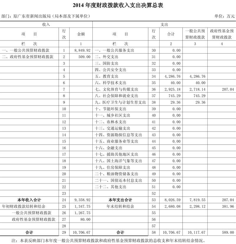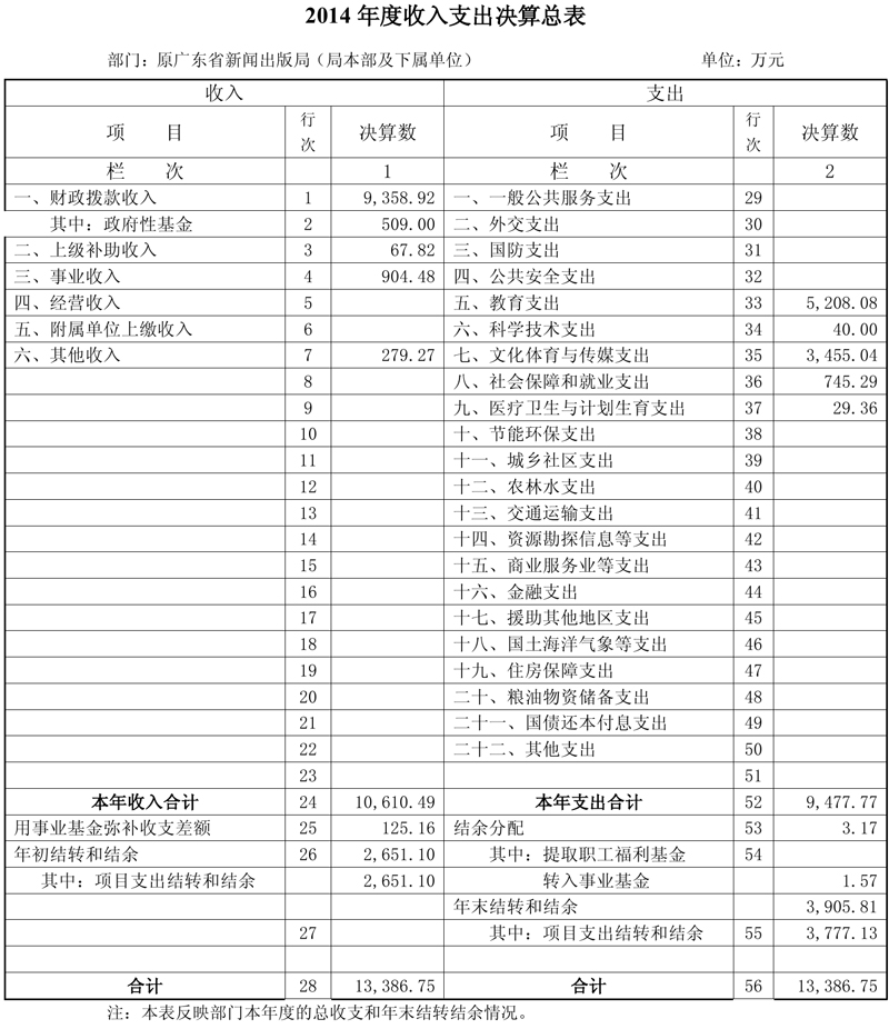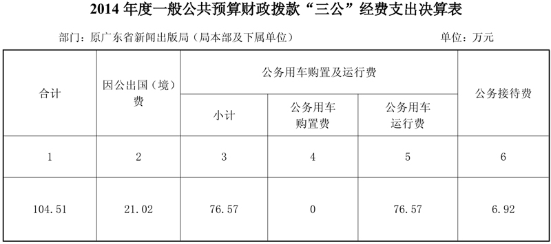 (注:根据省财政厅《关于批复2014年度省级部门决算的通知》(粤财库[2015]66号)分别对我局原广东省新闻出版局和原广东省广播电影电视局2014年部门决算分开批复的通知精神,我局2014年部门决算信息公示也分别按原广东省新闻出版局和原广东省广播电影电视局进行公布。)