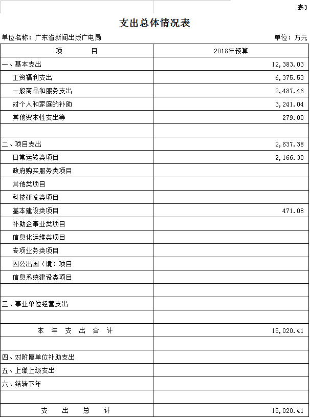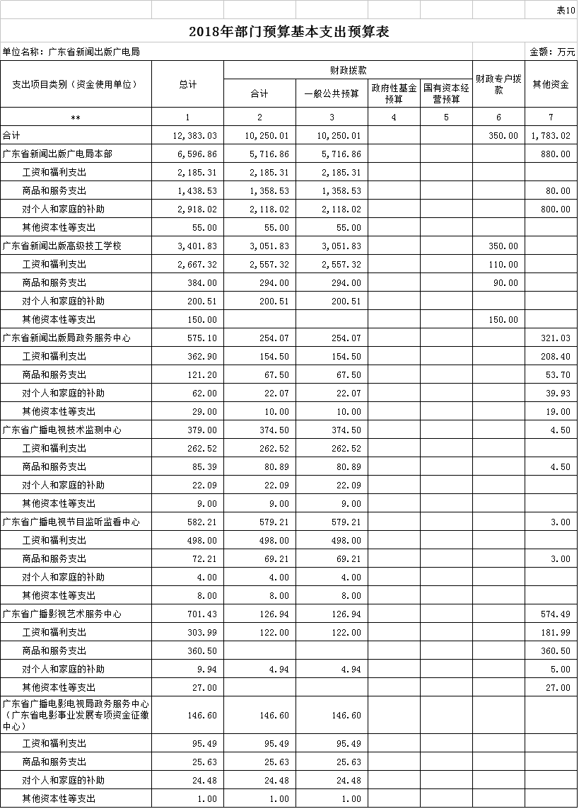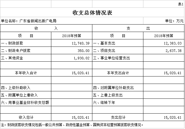 (一)本部门预算为汇总预算,包括:局本级预算,以及纳入编制范围的下属单位预算。下属单位具体包括(不含自收自支的事业单位):广东省新闻出版高级技工学校、广东省新闻出版局政务服务中心、广东省广播电视技术监测中心、广东省广播电视节目监听监看中心、广东省广播影视艺术服务中心、广东省广播电影电视局政务服务中心。