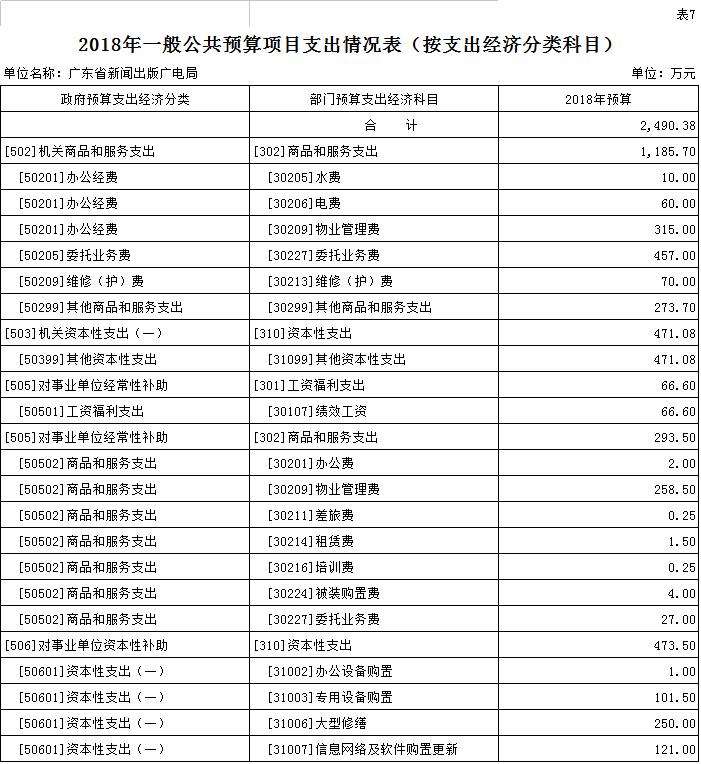 七、一般公共预算项目支出情况表(按支出经济分类科目)