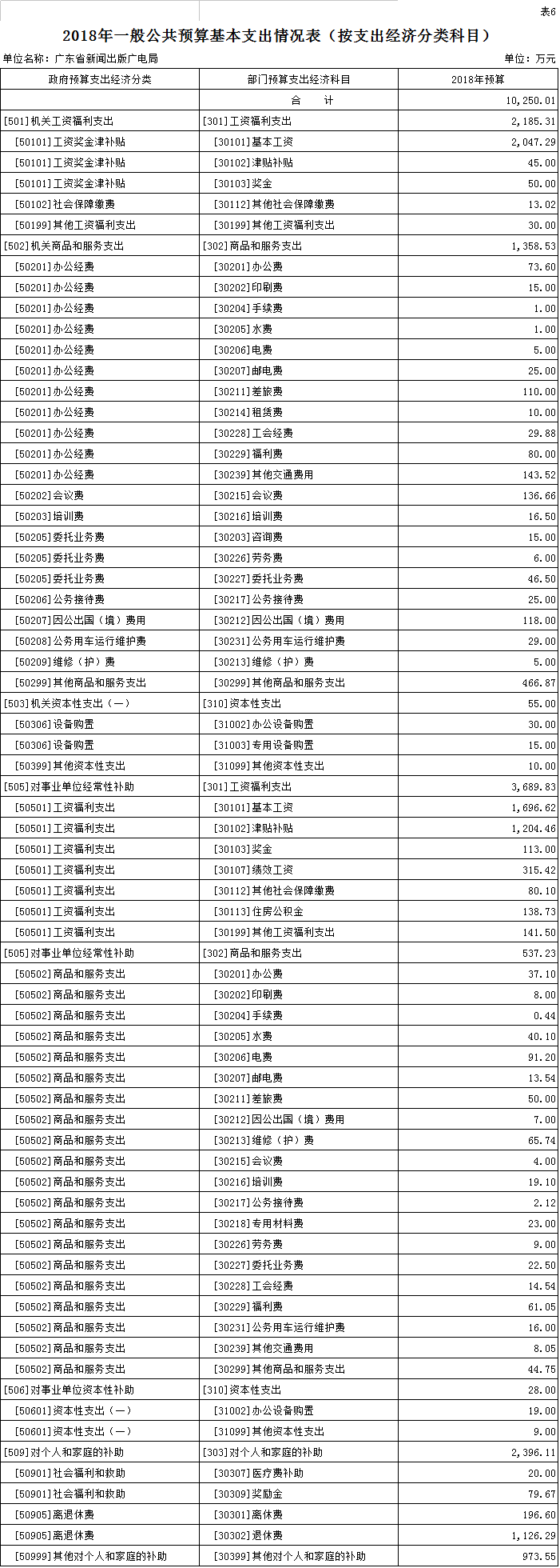 六、一般公共预算基本支出情况表(按支出经济分类科目)