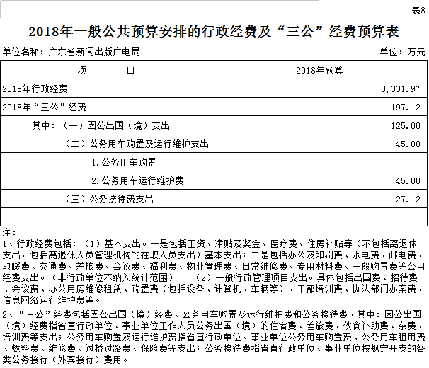 八、一般公共预算安排的行政经费及“三公”经费预算表